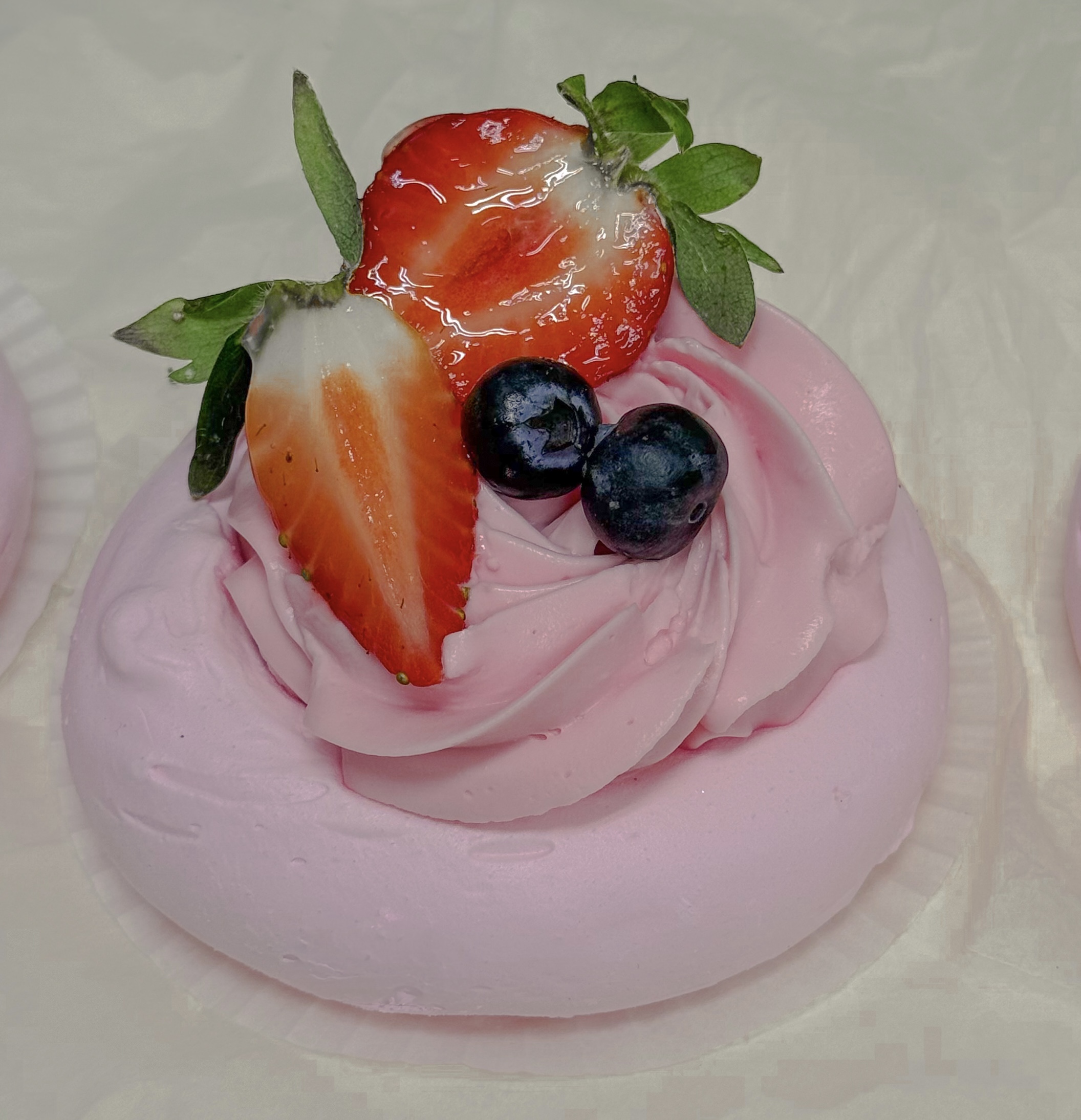 Склад: білок, цукор, кукурудзяний крохмаль, лимонна кислота, сіль, крем сир, вершки 30%, цукрова пудра, полуниця, малина, сезонні ягоди.